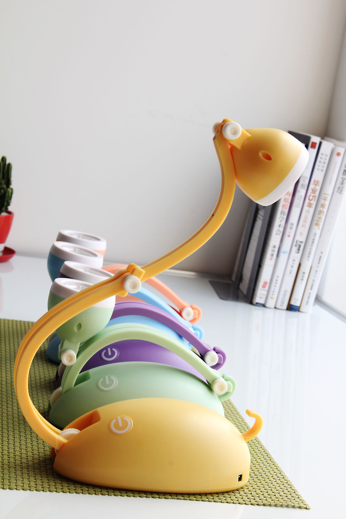 外观上的创意组合,整个台灯是由鼠标底座和老鼠头灯罩所组成,它是冰河世纪里的那只小老鼠的化身,调皮可爱,穿上香妃红、艾草绿、天空蓝的外衣,展示着它引领潮流的魅力